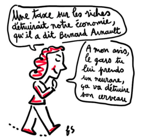 Le multimilliardaire Bernard Arnault, première fortune de France, qui possède plus de 75 marques de luxe (Louis Vuitton, Dior, Moët et Hennessy, Chaumet…) est le premier à monter au créneau et à traiter l’économiste Zucman de “pseudo universitaire” et de “militant d’extrême gauche”. Lui qui a réalisé un chiffre d’affaires de plus de 84 milliards d’euros, un bénéfice de 12,55 milliards et a touché 3 milliards de dividendes, exonérés de tout impôt. Si la taxe était votée, il devrait payer 3,8 milliards, soit 2% de sa fortune. Il en garderait pourtant 98 %, largement de quoi vivre…